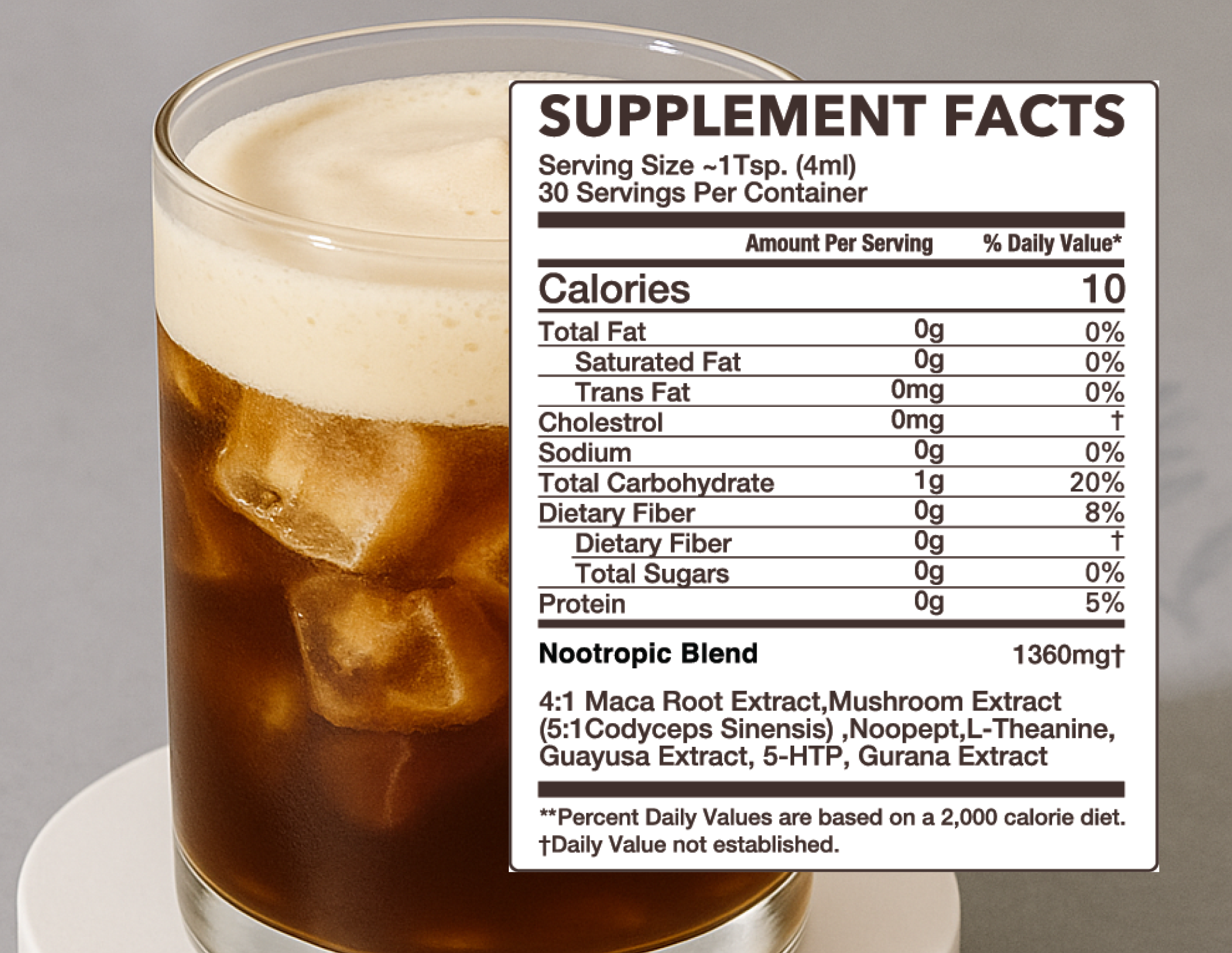 A blend of cold brew coffee, nootropics, adaptogens, and natural sweeteners like monkfruit. Nothing artificial.