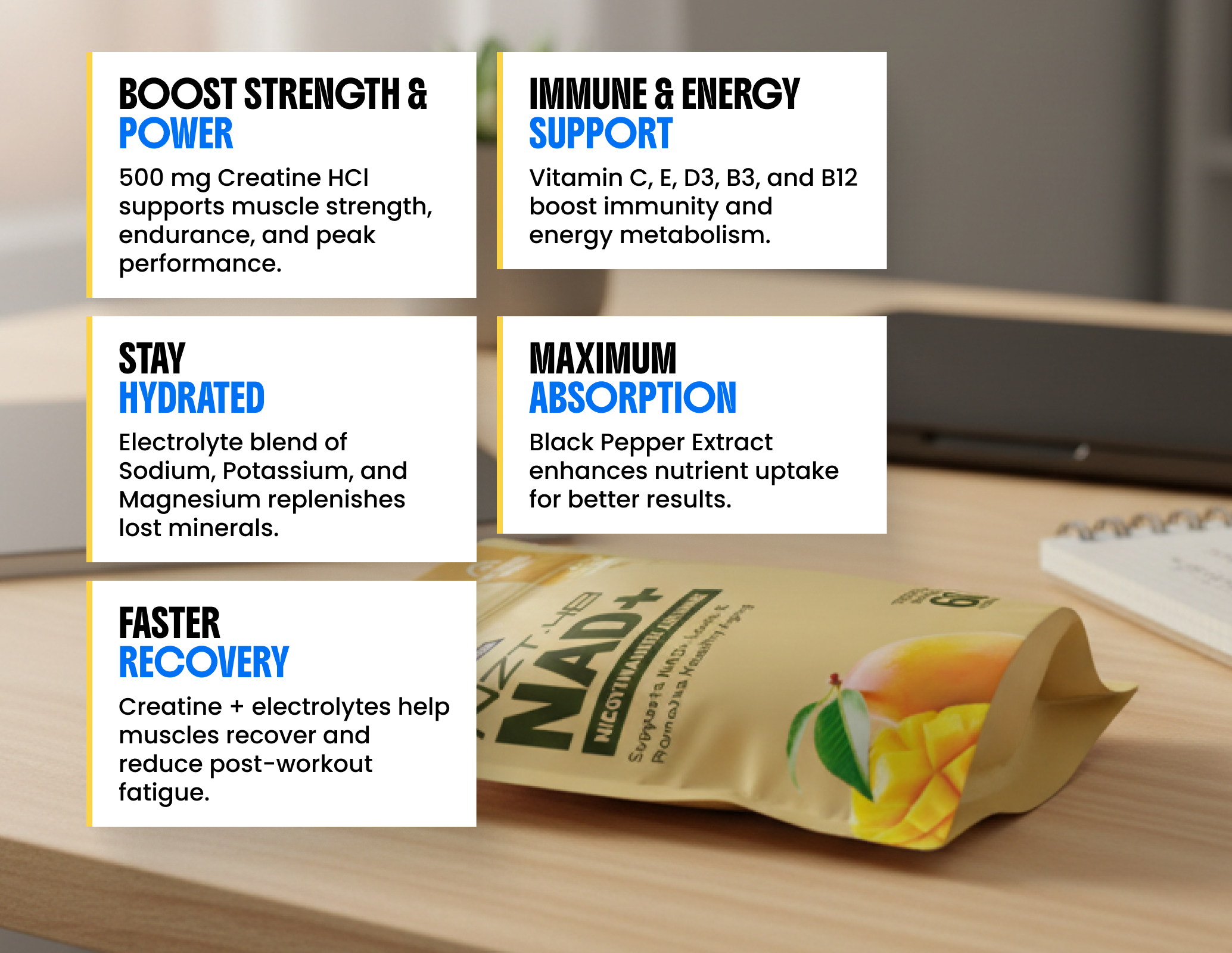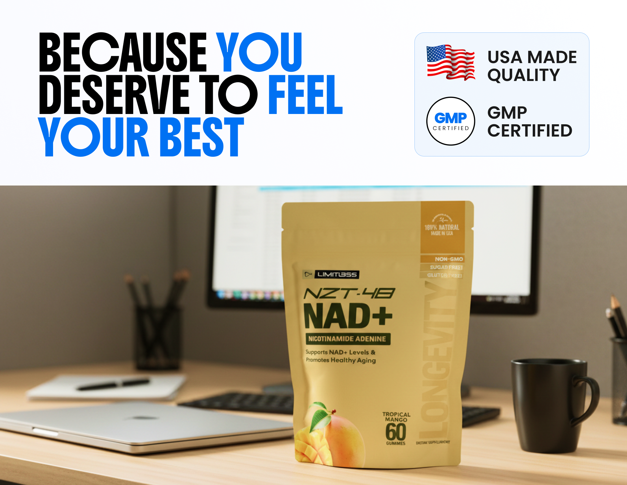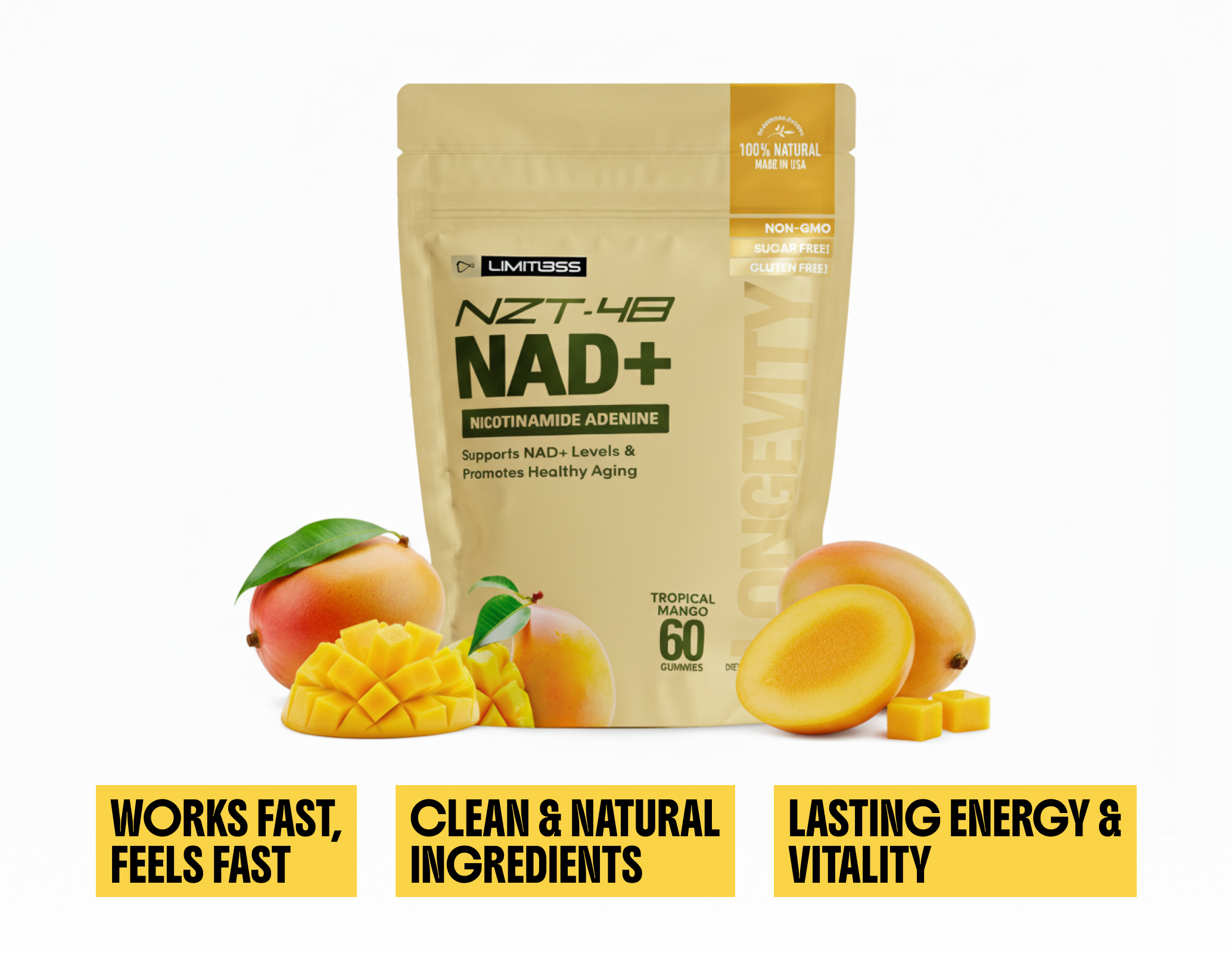 Fuel your body from the inside out with NAD+ and our NZT-48™ Nootropic Blend. Clearer focus, steady energy, stronger recovery — in a delicious mango gummy you’ll actually look forward to taking.