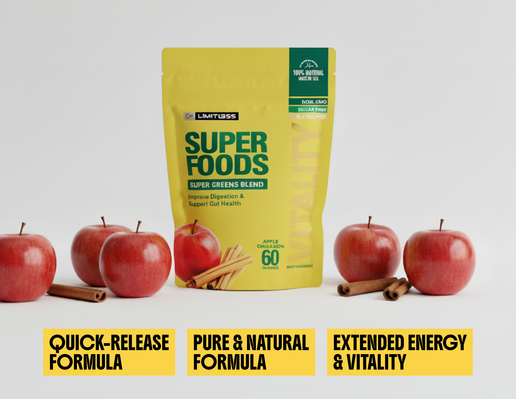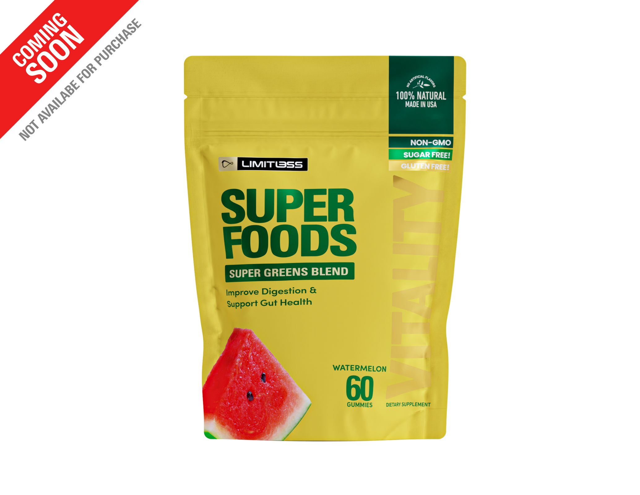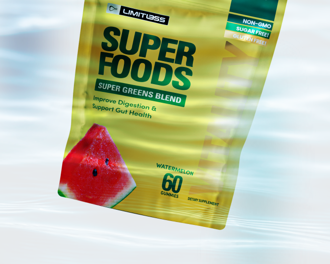Skip the powders and blends. Limitless Superfood Gummies pack the power of organic greens, antioxidant-rich reds, and gut-supporting enzymes into a tasty watermelon gummy with 0g sugar. Each serving fuels your body with essential nutrients, supports digestion, and helps you feel energized and balanced — all without the hassle of mixing or swallowing pills.